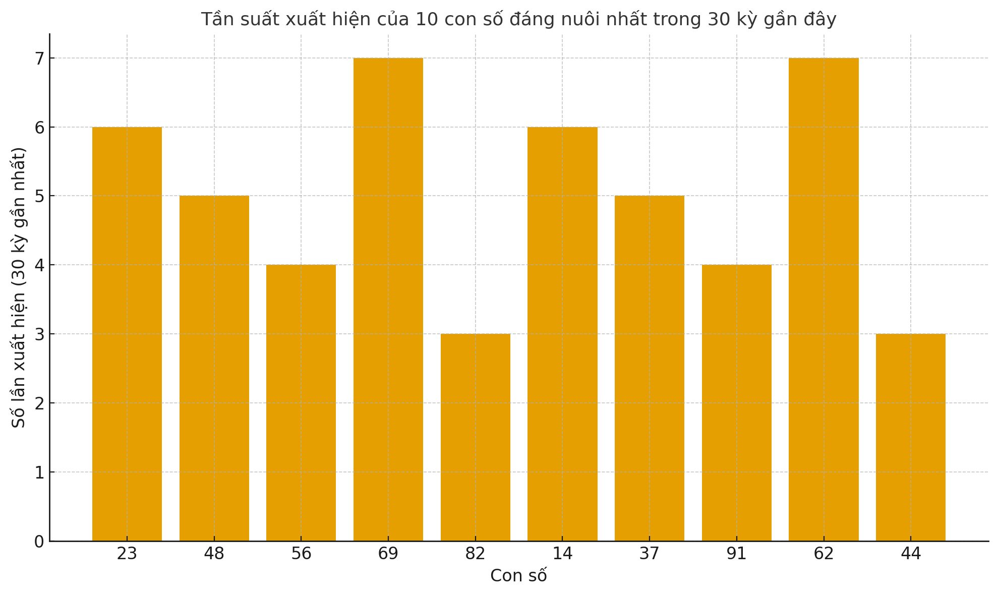Biểu đồ minh họa (Chart): Tần suất xuất hiện của 10 con số đáng nuôi trong 30 kỳ gần nhất